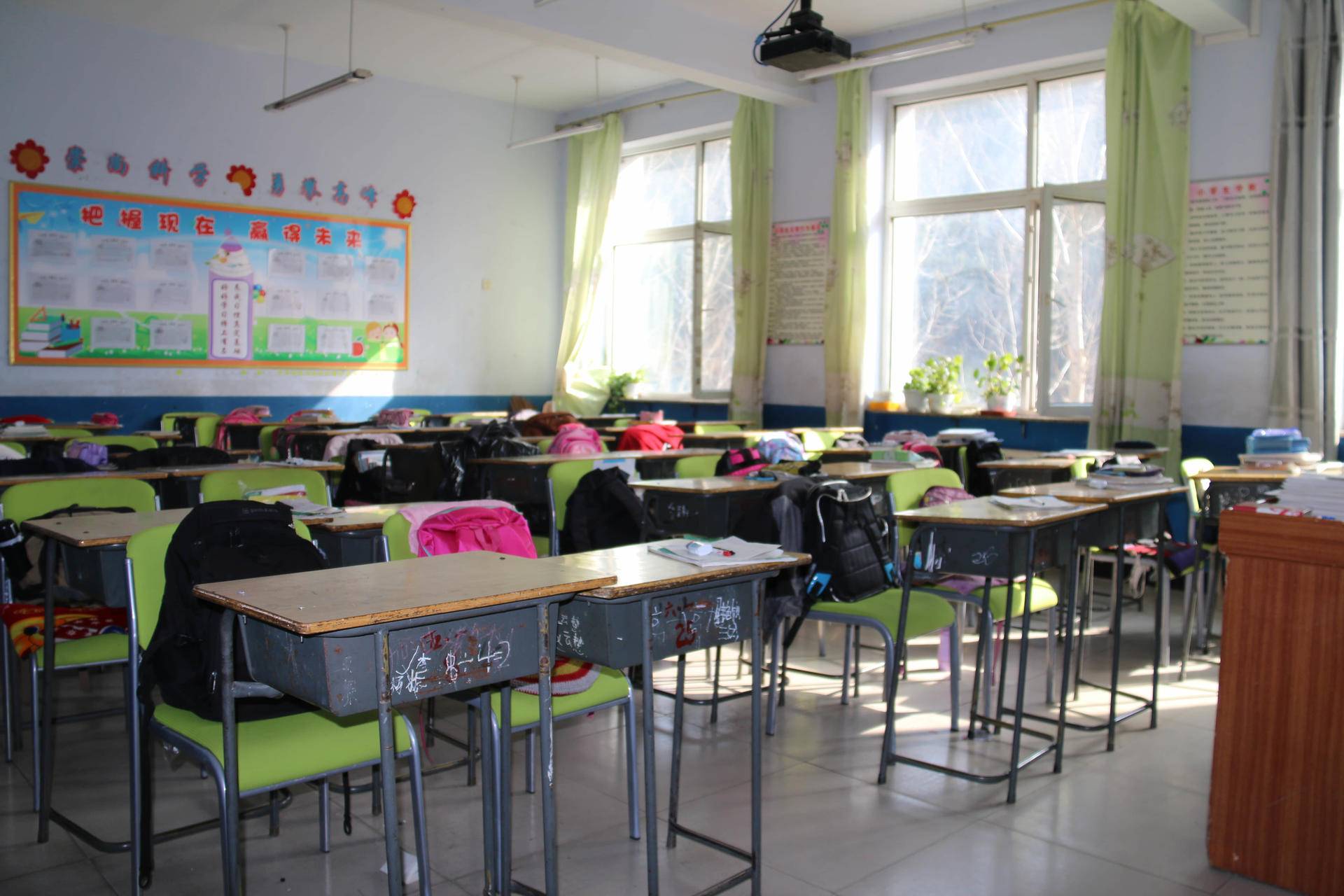 据校长讲述,学校之前用的桌椅是光板的,每到冬季来临,孩子们的后背和屁股容易着凉。换上软座椅后,温暖了很多,很多孩子说自己可以坐着沙发上课了。
