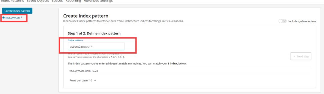 Kibana配置使用“域名-*”方式进行配置,每次新增域名,需要在此进行手工配置。