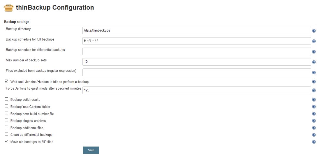 Jenins安装ThinBackup插件,配置每小时进行一次全局备份,且最多保留10份,备份后数据传至异地。