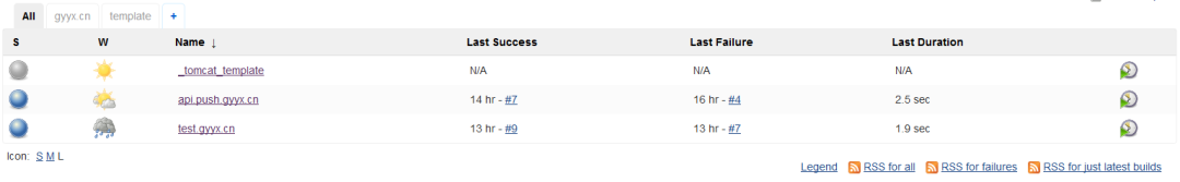 Jenkins的分组分为template与各domain,template存放模板,domain以域名的形式存放正式项目: