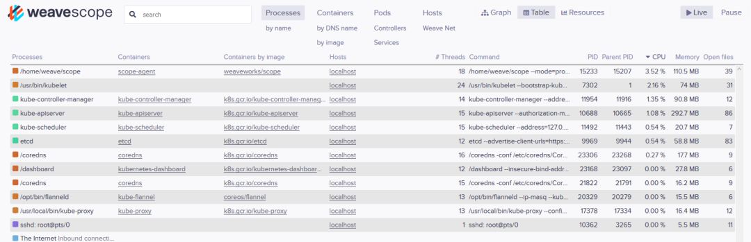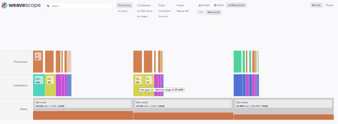 容器资源使用WeaveScope进行资源消耗监控。