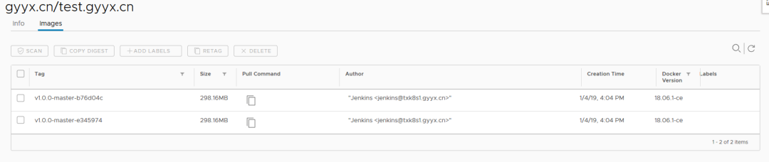 分组下镜像以站点域名:版本号-类型-CDGITLAB为名称,并基于版本号确定不同的站点版本。