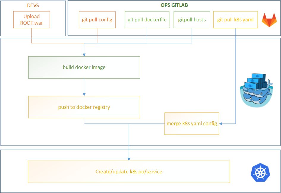 本方案适用于以Tomcat为容器的JavaWeb项目的持续部署过程,在Kubernetes方案中,所有的Node节点均采用统一配置,根据业务环境的需求进行节点数量的控制。