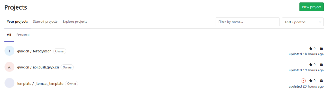 CD GitLab项目下分两个组template与各domain,template存放模板文件。例如:
