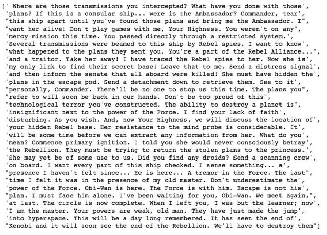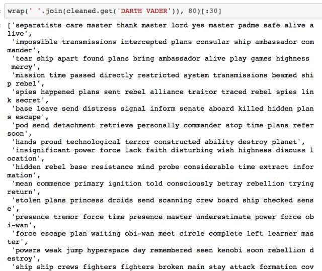 让我们看看经清洗后的文本长什么样子(以 Darth Vader 为例):