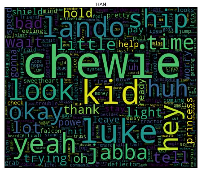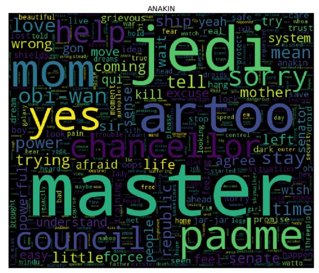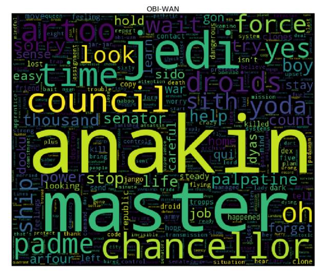 因此,我爬取了星战系列 1-6 部的电影剧本,提取出星战中每个角色的台词内容,并经过进一步的加工处理,对每一个人物角色进行词云可视化。