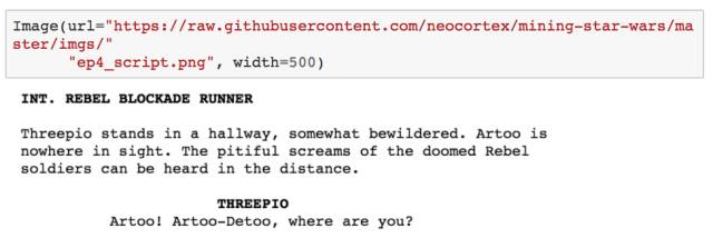 你能在我的 GitHub(https://github.com/neocortex/mining-star-wars) 上找到本文的所有代码。其实,我早在 2016 年的 EuroPython 大会上分享过此项目实例。