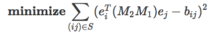 「数据」现在对应于索引 (i,j)∈S,并且训练损失捕获端到端模型 M_2M_1 与已知条目的拟合程度。由于 S 是在所有条目中随机选择的,因此如果在预测剩余条目方面做得很好就意味着「泛化」良好。
