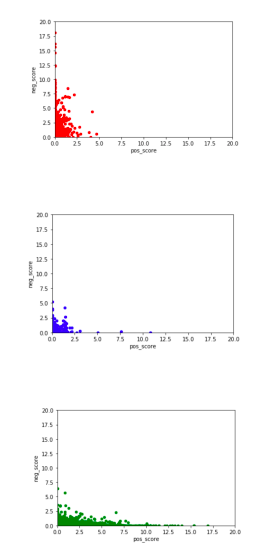 我们利用朴素贝叶斯训练的结果建立了一个积极和消极的词汇库。当处理给定的句子时,我们将每个单词打为正分或负分,并通过基于开源库 spaCy 的管道进行语音结构的精确分析来计算总分数,用于词性标注和依赖性分析。结果,我们得到了正、负和中性分数的参数,中性分数被定义为句子中既不是正面也不是负面情绪单词的比例。我们使用深度学习技术从训练集中推导出这些得分与情绪之间的关系。以下是我们针对消极、中性和正面情绪句子获得的图表:
