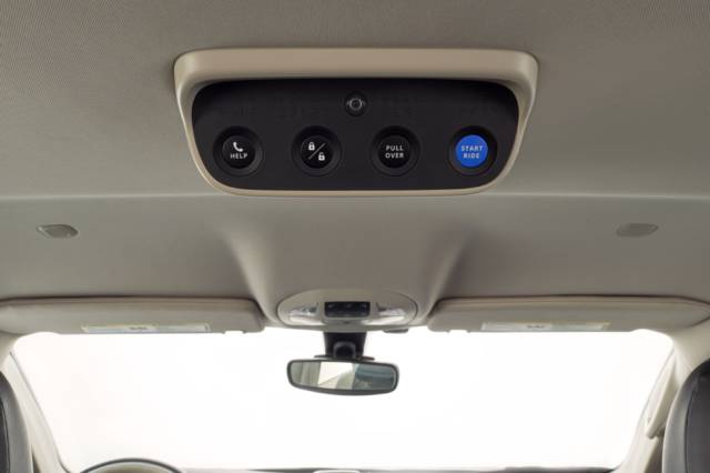 图丨在Waymo的自动驾驶汽车内,前排座椅后有显示屏幕,车顶上有四个操控按键