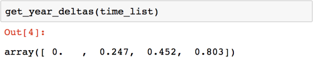 get_year_deltas: 获得一个相对于 time_list 中的第一个值的年增量(小数)列表