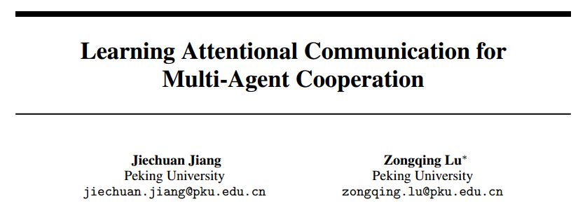 论文:Learning Attentional Communication for Multi-Agent Cooperation