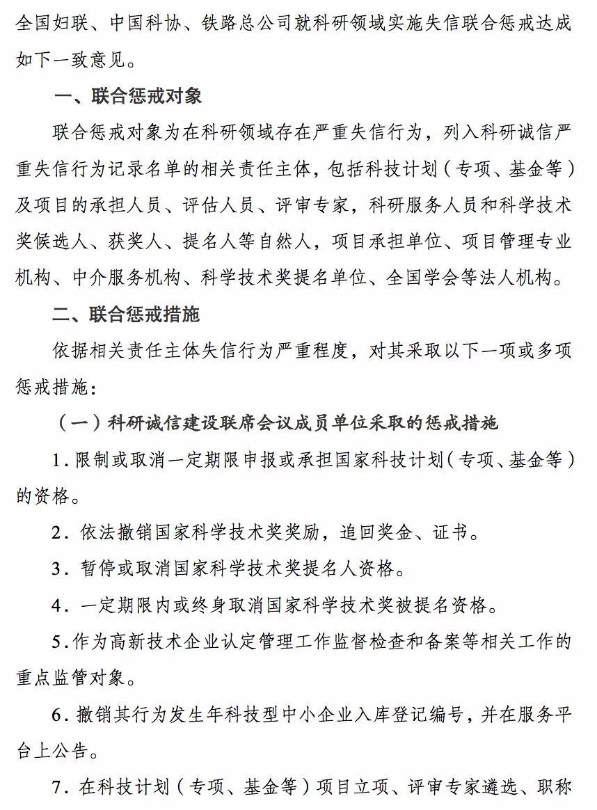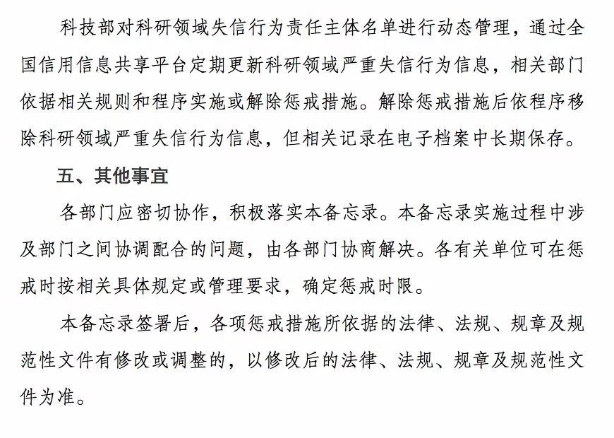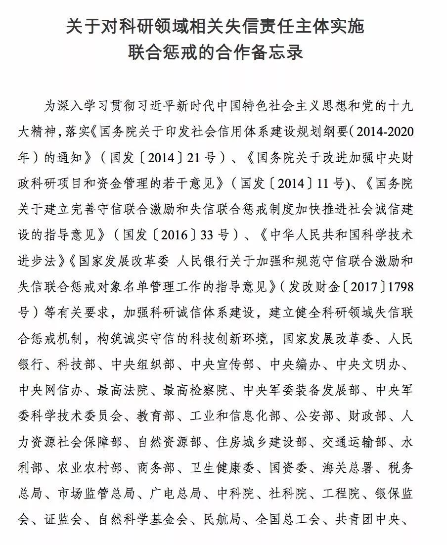 附关于对科研领域相关失信责任主体实施联合惩戒的合作备忘录全文
