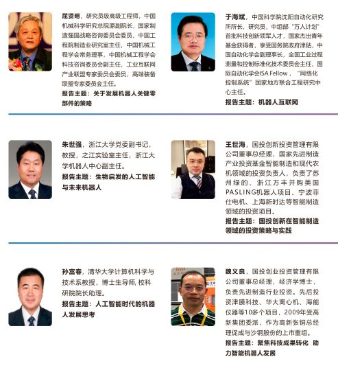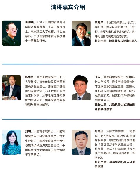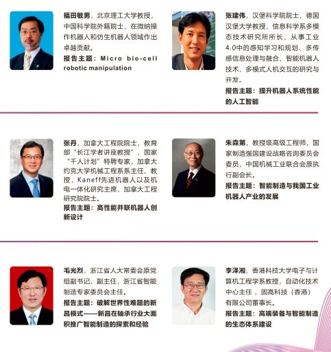 本届峰会邀请的参会嘉宾阵容更加高端。截至目前,国家最高科学技术奖获得者、中国工程院院士王泽山,中国工程院院士谭建荣、杨华勇、邓宗全,中国科学院院士丁汉、刘明,中国科学院外籍院士福田敏男,德国汉堡科学院院士张建伟,加拿大工程院院士张丹共9名国内外院士,中国机械工业联合会原执行副会长朱森第、中国机械科学研究总院原副院长屈贤明等一批业内权威人士和固高科技董事长李泽湘等业内领军人物将出席峰会。同时,本届峰会将体现更多国际元素,新加坡机器人学会、波兰凯尔采市将派代表团参会。峰会期间,将有1500余名业界精英、500余家智能制造和机器人领域知名企业深度参与本届峰会各环节。