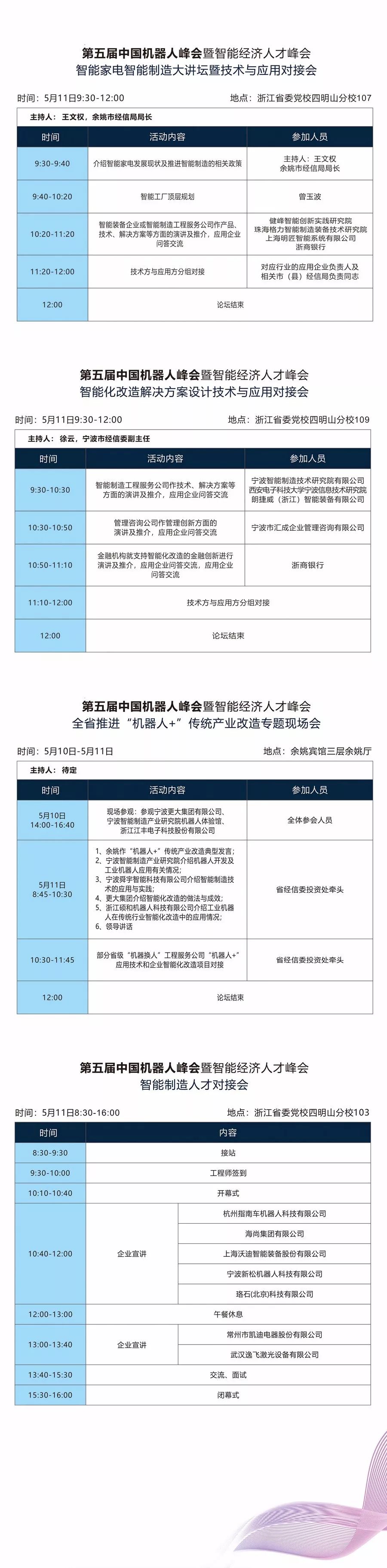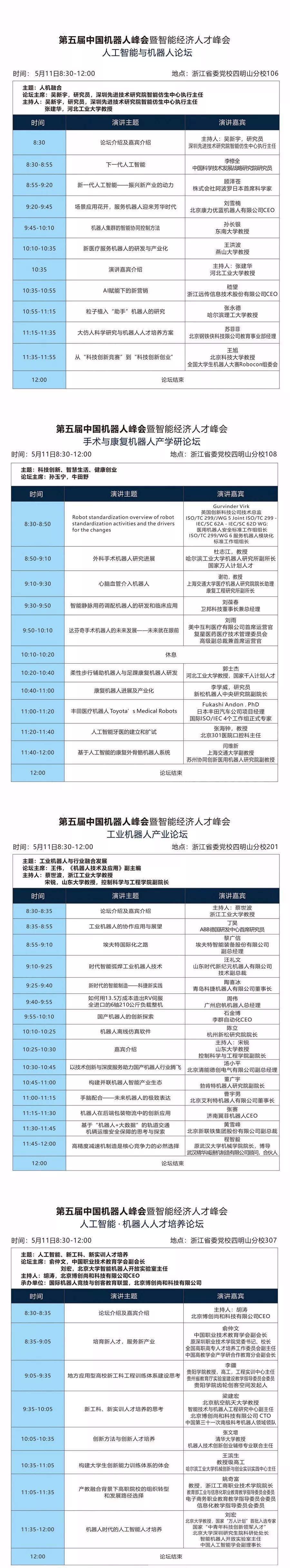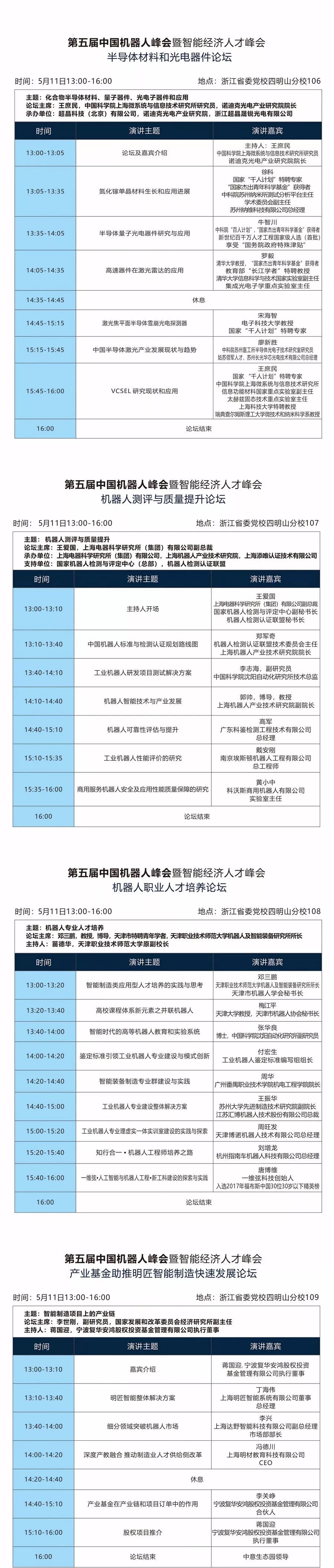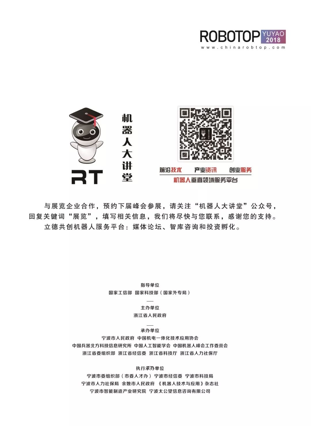 第五届中国机器人峰会暨智能经济人才峰会由浙江省人民政府主办,机器人大讲堂是重要协办单位之一。将于5月9-11日在浙江宁波余姚市梁弄镇的四明湖国际会议中心盛大举行。今日,大会议程正式公布!今日,大会议程、企业展览正式公布!