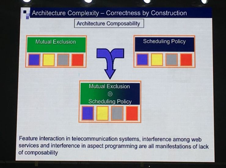 需要我们在进行系统设计的同时,也考虑到设计的标准:需要考虑到系统必须是非常值得信任的。我们还有一些可以控制的系统,可以进行和系统、环境之间更好的合作,这就是适应型的控制器,如此一来,这个系统就会变得足够安全。有的时候,系统也会出现一些问题,我们要对系统进行监控。如果问题出现,我们需要降低这些缺陷,这是共识。我们经常在有些区域运用这些方法,计算系统中有各种控制理论,我们使用控制为基础的各种技术来确保计算的正确性。尽管如此,还是出现了一些不可预估的风险,所以一开始的系统的设计就显得非常重要,我们需要确保这一点。以知识为基础的设计(包括它的设计时间的知识),有时,我们不能保证这个设计时间,因此,我们需要建立一些特性,设计流程的某些步骤能够保证真正在执行的时间,能够保证完全真实的执行情况。