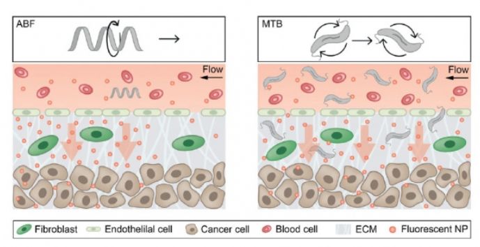 研究人员受到细菌的推进和运动方式的启发,打造出的磁性微型机器人有助于克服纳米粒子输药的最大障碍之一:如何让粒子离开血管并集聚在正确的位置。