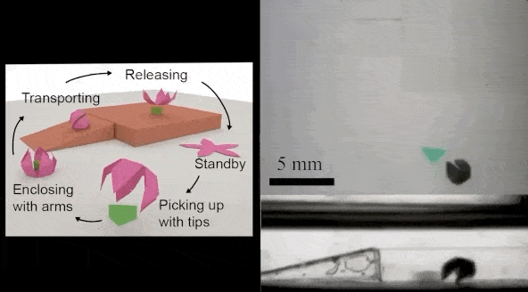 现在,研究人员已经开发出几毫米大小的微型机器人,它们可以折叠成无数种不同的形状,这让它们能够执行抓取物品、爬行等操作 —— 使用磁铁作为遥控器。