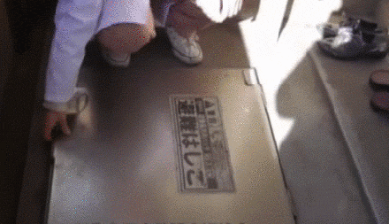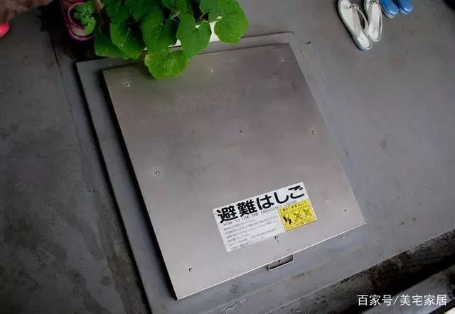瞧,每一户阳台的地面上都有一个这样的井盖,上面还印有避难的标识...