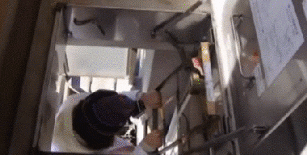 只要把它打开就会弹出一个折叠的梯子,顺着它爬即可安全去往楼下~