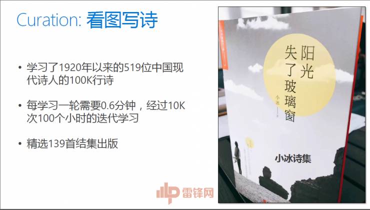 小冰还可以写诗,最近我们发表了一个小冰诗集。小冰说:“看那星,闪烁的几颗星,西山上的太阳,青蛙儿正在远远的浅水,她嫁给了人间许多的颜色”。