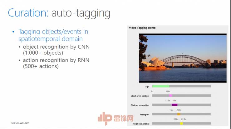 为了解决这一问题,梅涛博士表示,团队最近借用ResNet的思想,将3D CNN的层数做到了199,识别率能在UCF 101数据集上比之前的3D CNN提高6到7个百分点。这一对视频进行自动标签的技术,将会被用在微软的Azure云服务中。