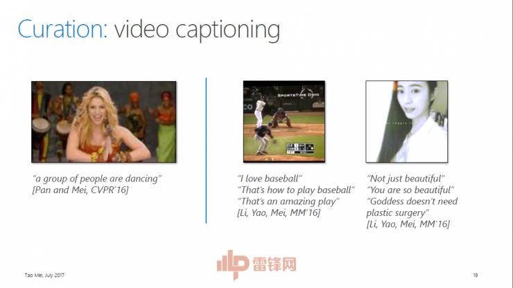 实现了视频自动标签技术外,梅涛博士还阐述了团队“更进一步”的研究工作:用一段连贯通顺的自然语言,而不是孤立的单个标签,来描述一段视频内容。
