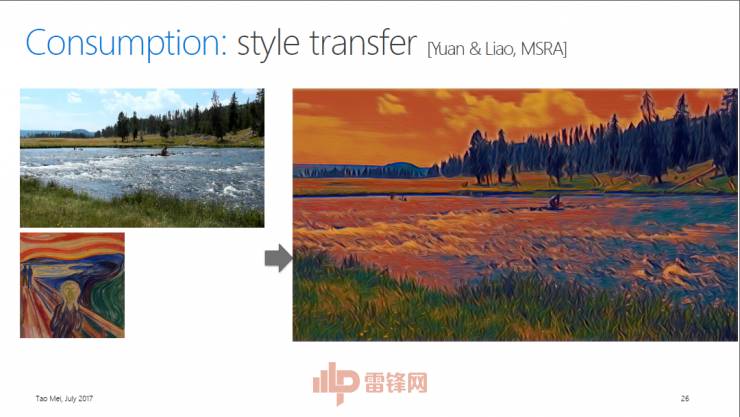 我们另外还做style transfer(风格转移),给你一个油画或者卡通,能不能把这个风格转移到视频中,可以把这个水的波纹表达出来。