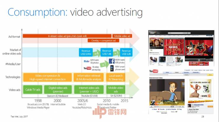 视频的消费往往和广告紧密相关。梅涛提到,做视频广告有两个问题需要解决:第一个问题是广告到底放在视频的什么位置;第二个问题是选什么样的广告,这个广告跟你插入点的信息是不是相关,使得用户接受度更加好。