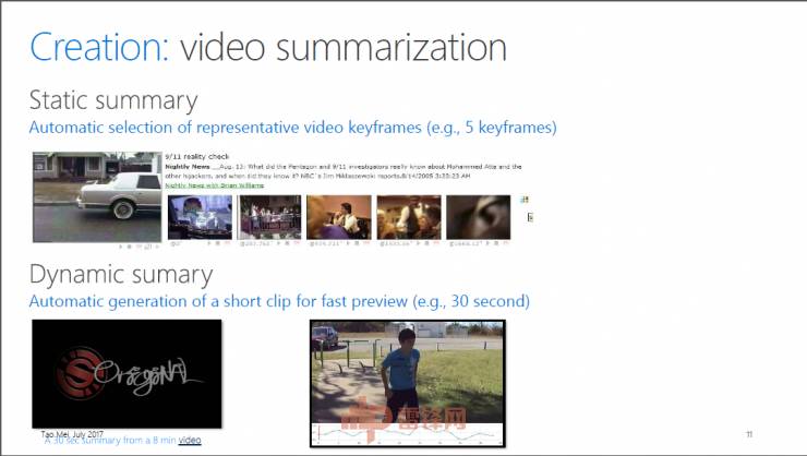 梅涛博士表示,微软目前将视频摘要的技术用在了Bing的视频搜索里,现在全世界有八百万的Bing用户通过一种叫multi-thumb的技术,可以快速预览每一个视频搜索结果。