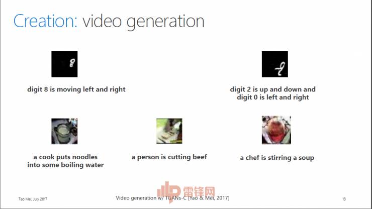 还有一个是Video captioning(视频说明),给你一个视频,能不能生成一句话来描述这个视频。以前我们说这个视频是一个舞蹈,现在可以告诉你说这是一个什么舞蹈。