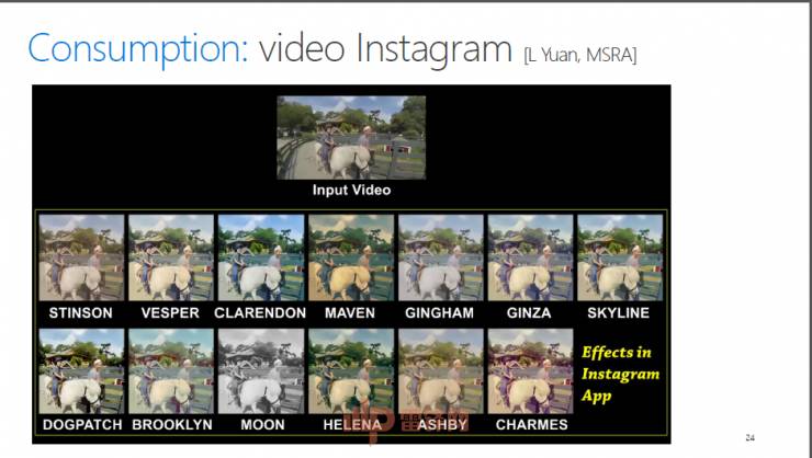 还有Storytelling(讲故事),我能不能给你提供服务,让你的图片、视频变得更好,这都是机器产生的效果(见PPT)。这个风格叫Fashion,我们只要加上人工的处理,视频就可以让你的图片变得更加时尚。这很容易用在一些to C(针对消费者的市场)的场景里面。