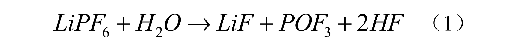 电池中的电解液极易与水反应,生成有毒的 HF 气体,反应如公式(1)所示: