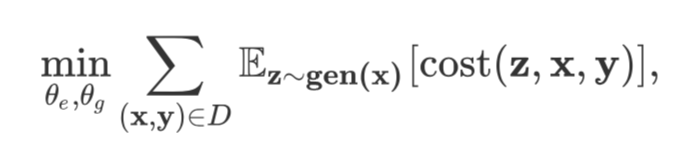 给定一个知识库(knowledge base)K,以及标注有对应的匹配知识库的语义表达(grounded meaning representation)G 或者问题答案(denotation)y的自然语言句子(问题)x,要学习得到一个语义解析器,使之可以完成经由一个中间未匹配知识库的语义表达 U,来将 x 映射到对应的 G 的功能。