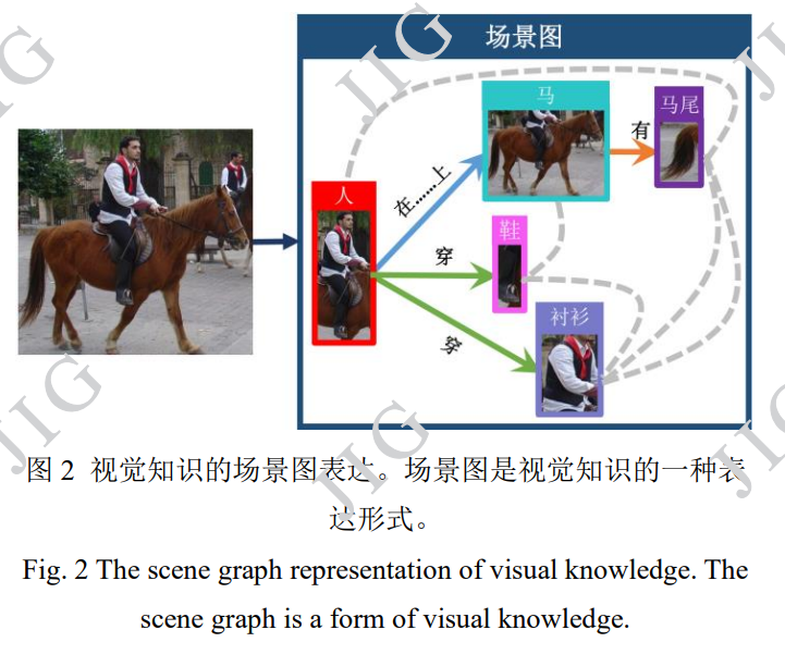 本文接下来简要从三个方面介绍目前和视觉知 识基本要素相关的跨媒体智能研究,即视觉概念、 视觉关系、视觉推理。