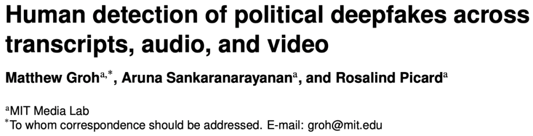 论文作者称:「伪造的政治演讲视频比伪造的文字记录更容易识别,这一发现强调了重新让人们忆起常被遗忘的『眼见为实』格言的必要性。」