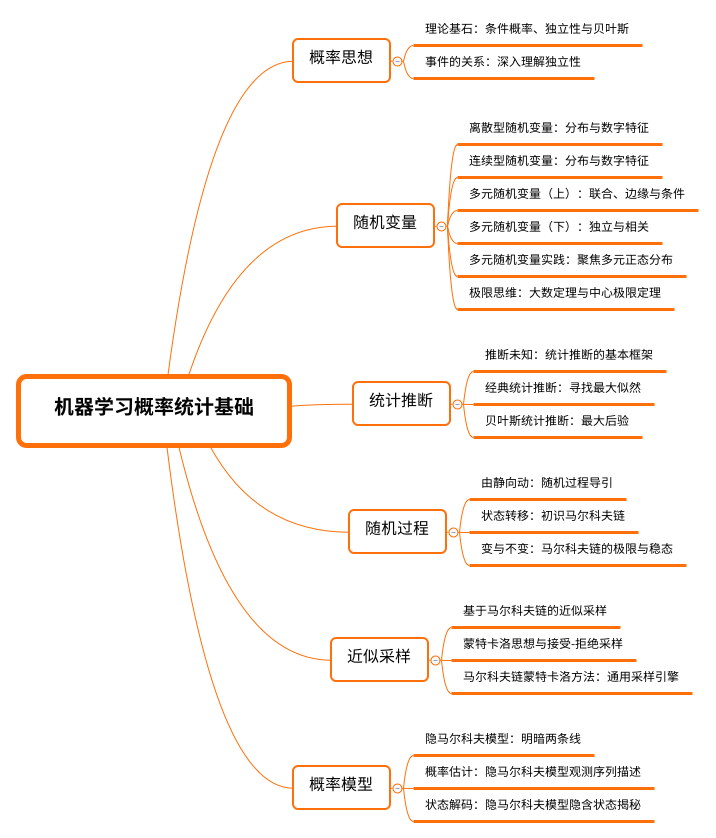 详解 6 大核心板块:概率思想、随机变量、统计推断、随机过程、采样理论、概率模型,筑牢机器学习核心基础。