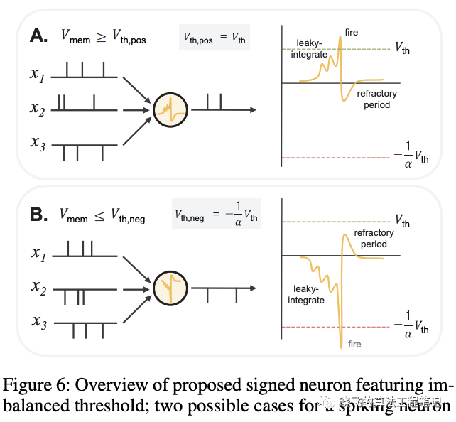 如图6所示,假设 ,在 时, ,膜电压需要积累多10倍来发射负激活,类似于leaky-ReLU