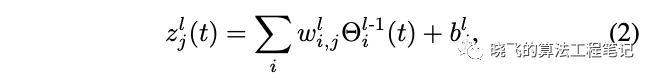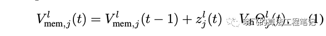 第 层的第 个神经元的膜电压计算如公式1, 为脉冲, 为临界电压, 为神经元的输入