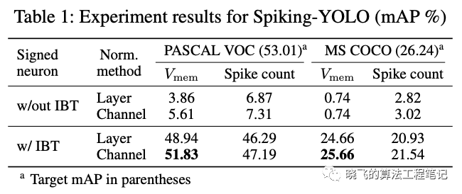 为此,论文使用channel-wise归一化(Channel-wise normalization)和阈值不平衡的有符号神经元(signed neuron with imbalanced threshold)来分别解决以上问题,搭建了基于SNN的目标检测模型Spiking-YOLO,论文的贡献总结如下: