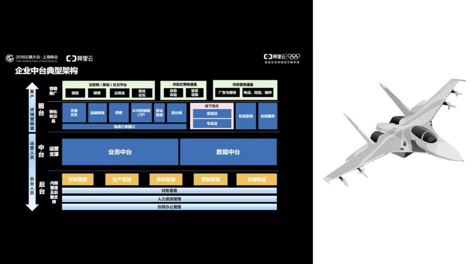 阿里的数据业务双中台堪称经典,上图摘取自钟华(古谦)于刚刚结束的2018云栖大会《企业核心业务数字化转型最佳实践》分享。