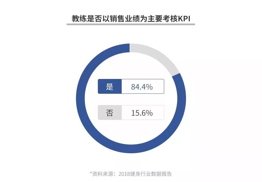 所以,开健身房,业界一直流传着一个笑话:开健身房,会籍顾问赚钱了、教练赚钱了、甚至前台都赚钱了,但是老板不赚钱。为啥?因为会籍顾问和教练的销售提成当月就发,但一个会员,老板却要服务12个月甚至更长。数据显示,84.4%的健身私教都有销售KPI。