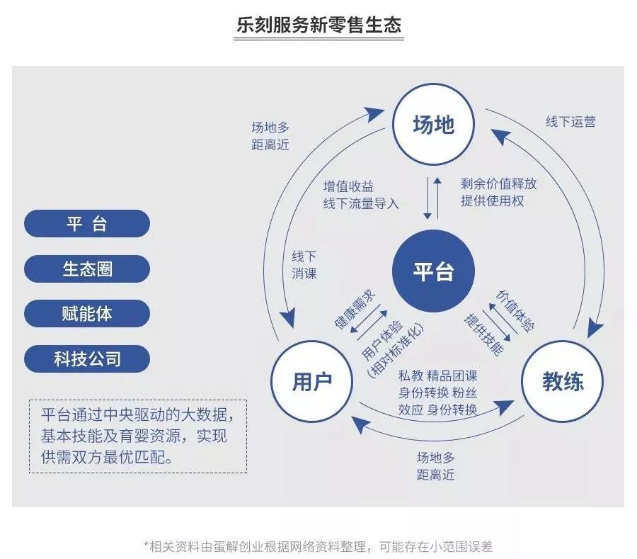 也就是说,虽然目前这个“场”一个更多的在线下,一个更多的在线上;“货”一个更多的指教练也就是服务,一个更多的是电商产品;但由于他们的“人”毫无疑问是同一群人,同时涉及线上和线下流量打通,所以在蛋解创业编辑部看来,他们两家的“场”迟早也会有交集。