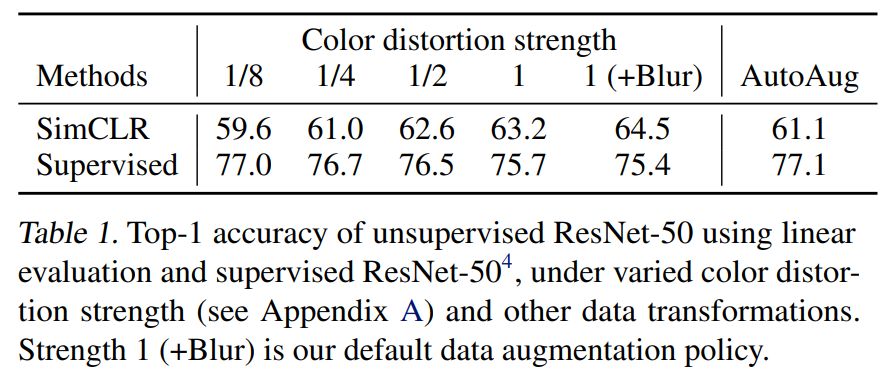 多个数据增强方法组合对于对比预测任务产生有效表示非常重要。此外,与有监督学习相比,数据增强对于无监督学习更加有用;