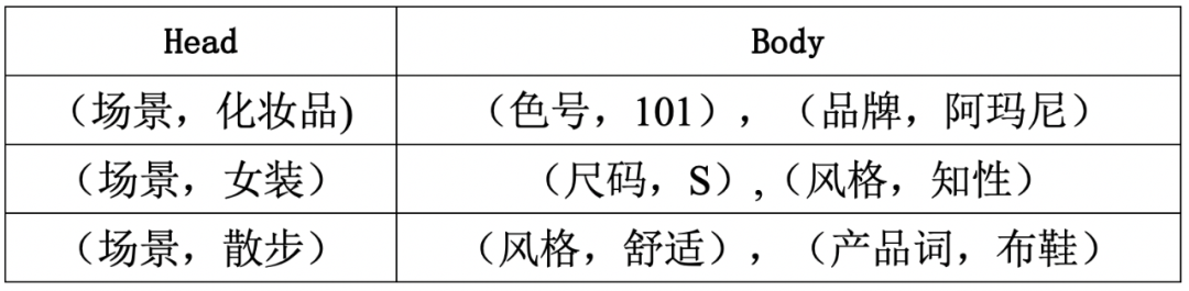 在电商实际应用中,每个商品都会被挂载到若干个场景,以图结构中的节点形式存在。商品由结构化信息表示,以键值对(Property:Value)形式(后称PV)存在。场景(LifeStyle)的价值则在于打通商品实体之间的联通,提供跨域的实体搭配,因此新的商品必须要通过规则库中的规则挂载到特定的场景才能进入电商的运营体系。商品场景的样例如下图所示。