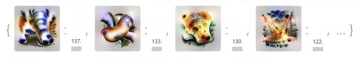 为了制作一个语义词典,我们将每个神经元激活与该神经元的可视化进行配对,并根据激活的大小对它们进行排序。 激活与特征可视化的结合改变了我们与潜在数学对象的关系。 激活现在映射到图标表示,而不是抽象的索引,其中许多表现形式类似于人类的思想,如「松软的耳朵」、「狗鼻子」或「毛皮」。