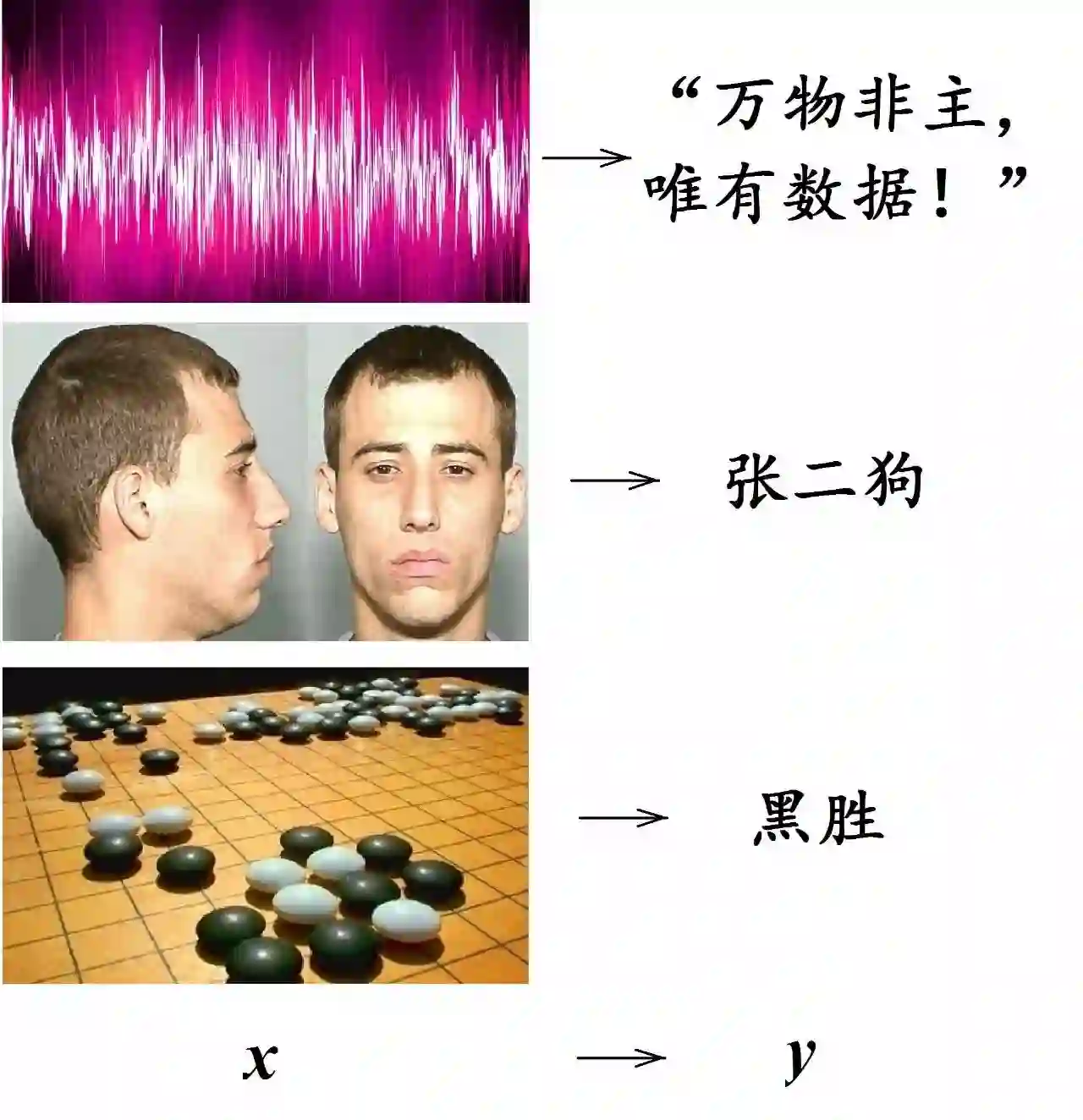 什么是数据?其实就是一个二元组(x, y):其中x是一次观测值,也就是“看到了什么”;而y是观测的标签,也就是“看到的是什么”。这两个要素,凑在一起才叫一条数据,缺一不可。举个例子,在语音识别中,x就是一段声音信号,y就是对应的文本;而在人脸识别中,x就是一副图片,y就是这个人的编号。
