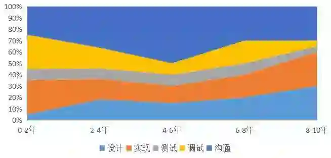 现有的码农工作流程,可以分为沟通、设计、实现、调试、测试这几个步骤。某典型程序员随着年资变化,这几个步骤的时间占比大致是上图的样子。如果形式化脚本+自动编程成为现实,上图中的实现、测试、调试逐步骤就可以交给机器了。而沟通这一步,也将大大简化。由于可能比较自动地生成数据,机器人编程解决复杂的任务,恐怕是迟早的事儿。到了那一天,程序猿就要大幅减少,产品狗势力会进一步扩张:就算是不懂什么堆排序、B+树、CNN,只要用脚本把需求表达出来,一样能做出产品!不过,那时产品狗的要求可高多了,得有真正的逻辑提炼和任务分解能力,就会吵个架、抢个功是远远不够的。