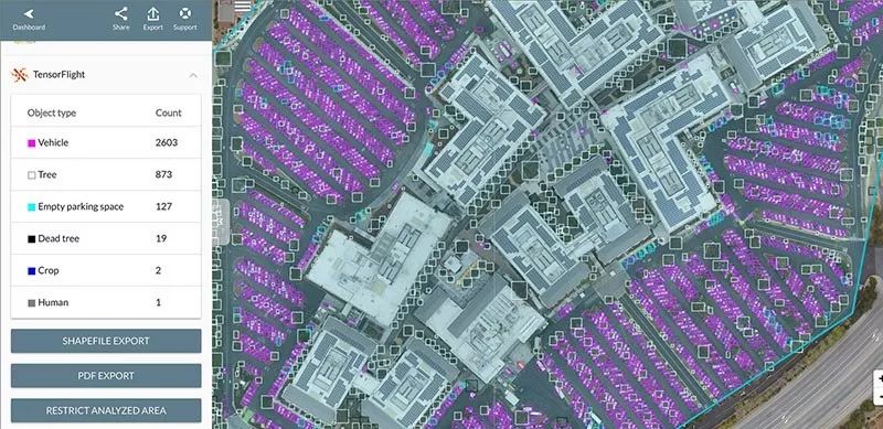 一些公司用无人机来自动勘察人类难以进入的区域(例如Betterview),或使用目标检测技术进行一般性的分析(如TensorFlight)。除此之外,一些公司在没有人工干预的情况下使用这种技术进行自动检测和定位问题。