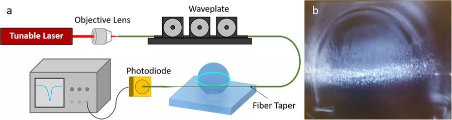 “回音壁模式的谐振器,从根本上说就是光学谐振器,相关研究至少已有20年。人们已经做到的就是,采用一种光学纤维,并用喷灯接触其一端。当熔化的纤维重新凝固时,在其一端形成一个圆球。这样就可以连接到光源,并制成一个传感器。